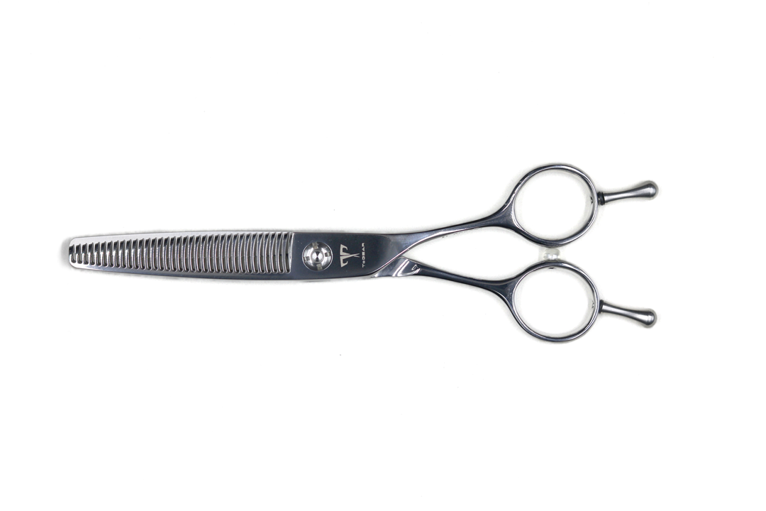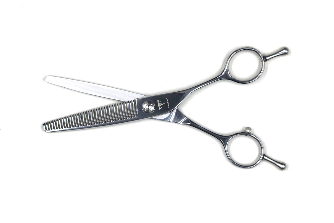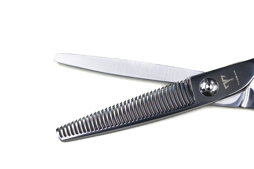 ToGEAR_005は、カット率30%±で、量感調整を効率的にこなしつつも、ラインのなじみとナチュラルな質感を両立するセニングシザーです。